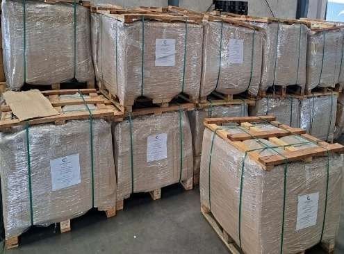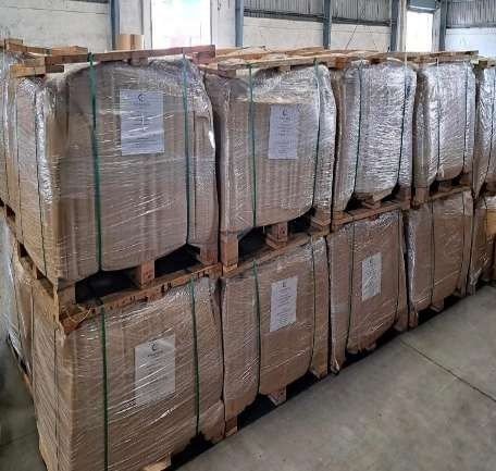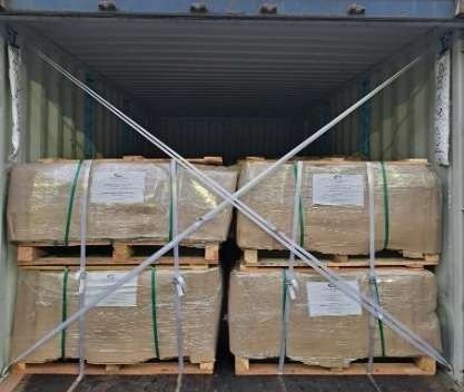 The material is packed in 25 kg HDPE bags with LDPE liners or 1000, 1250, 1350 Kgs Jumbo bags, placed on brand-new, fumigated wooden pallets with cardboard protection on all sides and shrink-wrapped for moisture and contamination control. Prior to palletization, the wooden pallets are heat-treated and fumigated with ISPM 15 regulation, and a certificate of heat treatment and fumigation is obtained. The pallets are then securely loaded into containers to ensure the bags remain safe, intact, and undamaged during transit.
